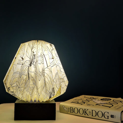 GREEN FLORAL COLLAPSIBLE ORIGAMI TABLE LAMP